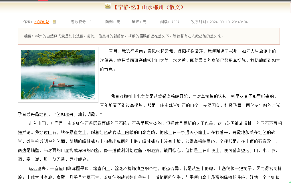 NO.11 小猪她爸 【宁静·忆】山水郴州(散文)_江山文学网 https://www.vsread.com/article-1004406.html