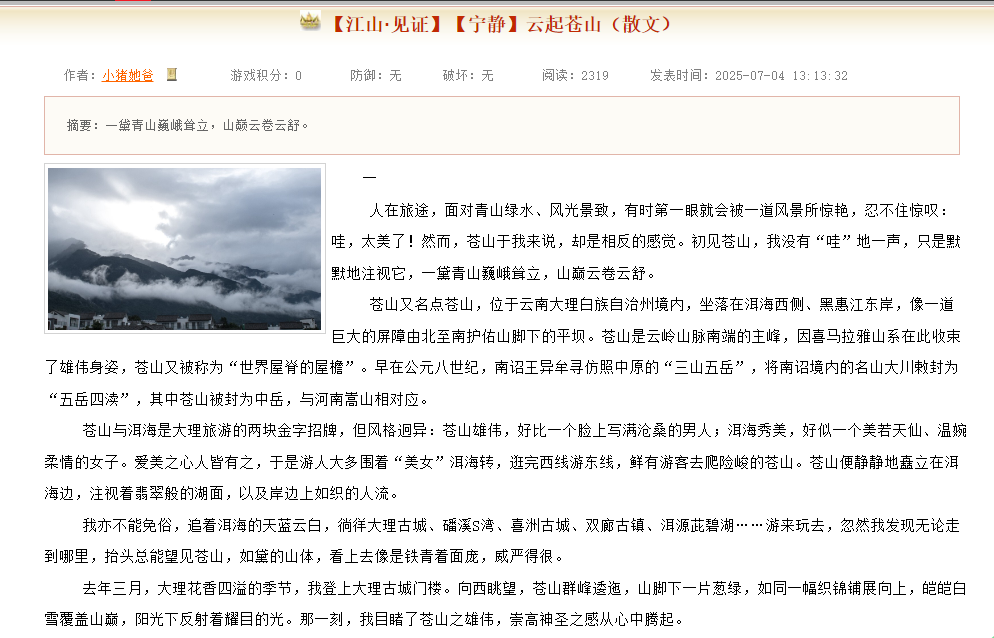 NO.12 小猪她爸 【江山·见证】【宁静】云起苍山(散文)_江山文学网 https://www.vsread.com/article-1023612.html