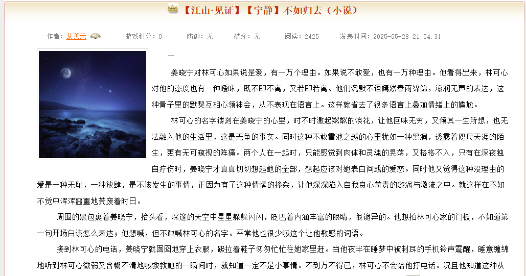 NO.13 裴善荣 【江山·见证】【宁静】不如归去(小说)_江山文学网 https://www.vsread.com/article-1021536.html