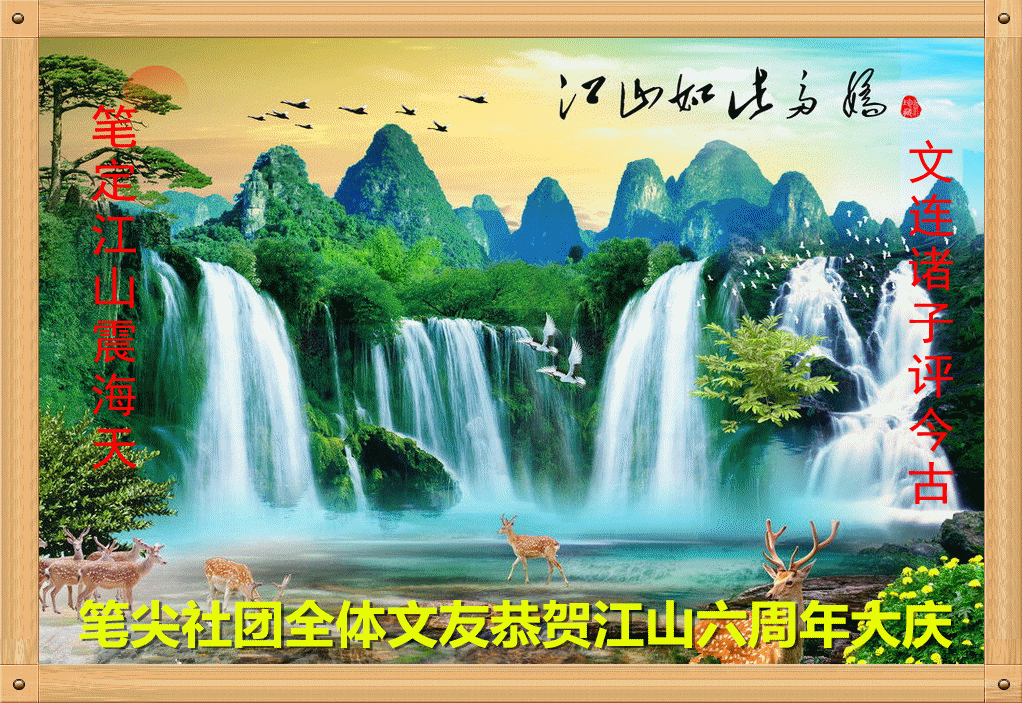 祝福江山,祝福笔尖。大家相约在江山,都是一份缘。让我们敲打键盘,书写人生,描画江山。 【墨香:毛六子】 |
