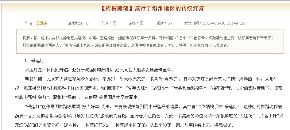江山ID:苏登芬,男,19578月出生于淮南市淮河岸边的架河镇苏涂村老郢沿淮人家。又名苏登峰,笔名淮上亦人,自号穿破袄子的人。1978--1983年在架河文化站工作,1984--199010月潘集区文化局工作,1990年至今在芦集、贺疃、潘集镇政府残联等部门工作。中共党员,1986年至1989年初本人和区文化馆的孙广瑜同志编写4万多字的《潘集区文化志》共五章二十五节。我经手编写四章十九节,孙广瑜编写第五章六节,本人编写分别1、沿淮花鼓灯及灯歌P36-43面,2、武霞轶事,传说类P55-67面,3、沿淮灯舞、大鼓、唢呐P68-73面,4、沿淮歌谣,民谣,歇后语P73-91面。