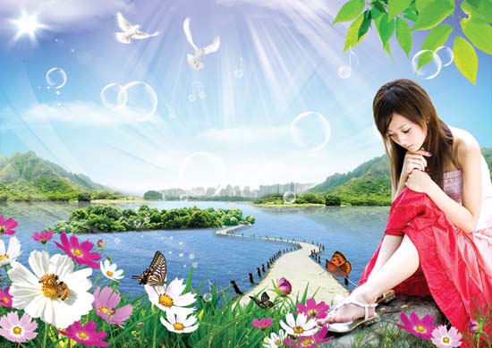 悠远的诗意飘来 那是诗经的呼唤 我轻轻张开手臂 拥抱春天的激情 悠扬的音乐飘来 那是天涯的呼唤 我轻轻闭了眼睛 聆听春天的模样