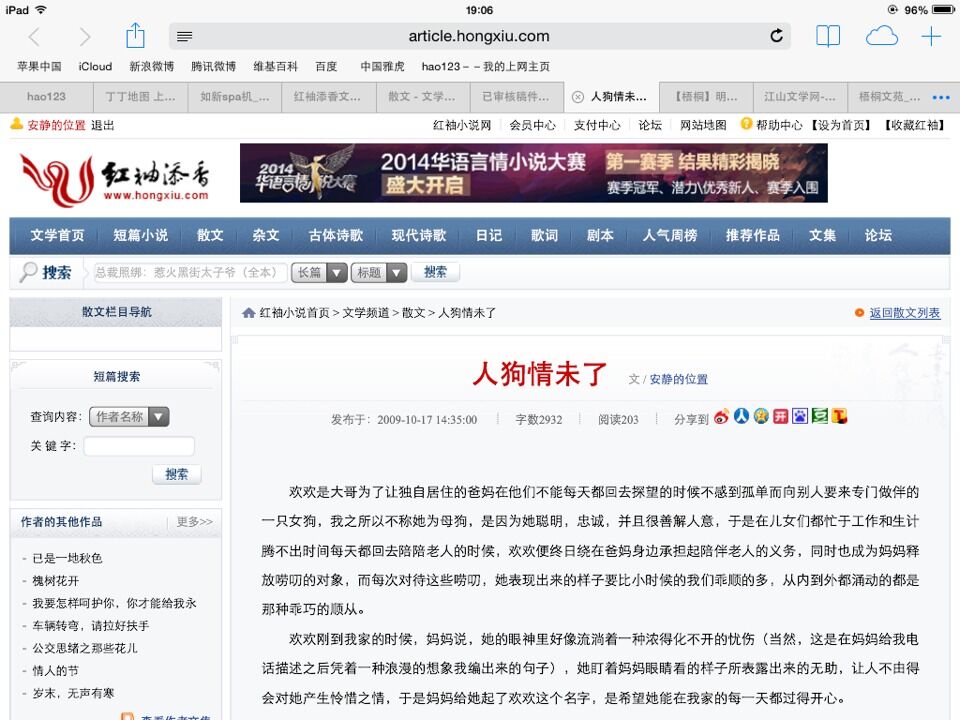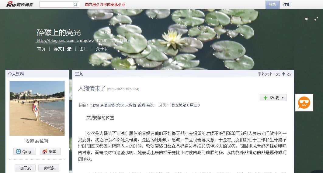 作者安静的位置原创作品《人狗不了情》最早发表在红袖添香和新浪博客,其他非此笔名的作品,均为非法转载。