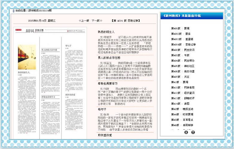 2015年01月14日 星期三江山追梦《母与子》刊登颍州晚报20150114期