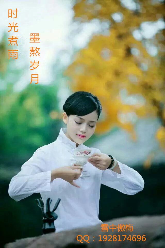 【渔舟】【时光煮雨,墨熬岁月】2016-05-27 17:22:59岁月是一首诗,诗的韵脚 是那屋檐下串成的泪滴 风吹雨成花,时间追不上白马 你去了你的天涯 我留在了我的海角 * 时间煮雨 将斑驳葱绿的岁月 煮成了雨水,覆盖了旧时光 云翻涌成夏 泪水被岁月蒸发 划过悲伤的河流 用岁月熬墨 以字取暖 * 将岁月熬成墨 轻轻蘸取 写一阙清词断章 用诗的韵脚,浅吟低唱 是谁 偷走了我那浅浅的低吟 洒了一地诗雨 是谁 喝醉了我那醇醇的相思 吐了一身的叹息 * 墨染经年 是你韵逦了我的豆蔻年华 芊芊红尘 是你渲染了我的山水墨画 * 点一盏时光之灯 用时间煮雨 将岁月熬墨 慢写时光 捧一卷有你的诗经轻轻诵词 沉睡在千年的的宋词里 将自己签于扉页 以温婉的姿态等你轮回 * 花开若是有情 那么岁月是否安然无忧?