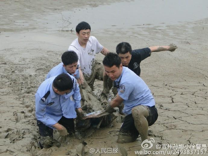 6月10日,安徽宣城市孙埠派出所接警,在河道淤泥中有异样。民警立即赶到现场,在距岸边约20多米的河道中央,发现露在淤泥上方的一双手和一颗脑袋,头上脸上全是泥巴,看不清性别和年龄。伸着的两只手还在轻轻摆动。