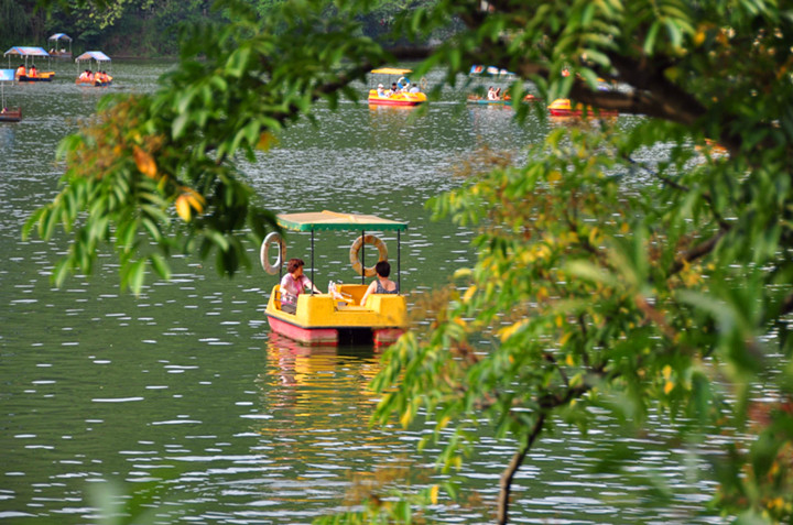 穿过漫长的隧道来到黔灵湖,一眼望到高高竖起的英雄纪念塔,湖里有飘飘荡荡的游船。