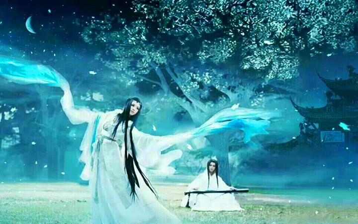 繁星银勾照广川,琴音铮铮韵缠绵