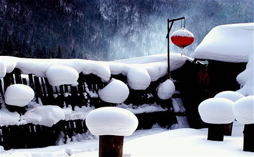 雪乡的日子,充满童话般的世界 还有那屋顶上那枚红灯笼 是雪乡人日子里的红彤彤 我爱有雪的故乡,那是一辈子 不想舍弃的记忆