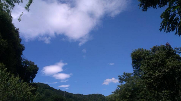四面绿色支起的一汪蓝天。从这个角度,应该是仰卧在一片草地上,避风避人的一坪绿地,是闲暇时候最好的去处。在这里放空一切世俗杂务,供心灵小憩,看树看云,让心静成蔚蓝色,像天。我常羡慕井底之蛙,世人笑它见识少,可是它有自己的一片天,少受干扰,不是一件幸福的事情吗?