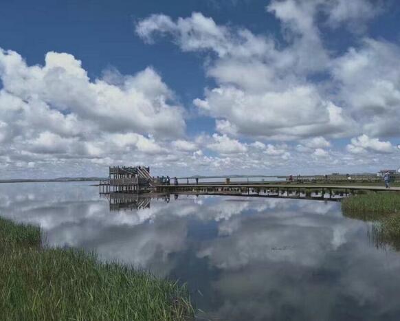 爱天也爱水,有人说这幅图的云不够白不够高远,有风雨欲来的压抑,的确是,但是我的第一印象是这里的水真静真净啊,也许水天一色就是这样的吧,不一定只有蔚蓝。天上的云水里的云,简直像一副油画,色彩晦暗只是为了区别水和天。站在桥上,有一种掉进天空里的错觉。这应该是野渡无人舟自横的境界吧,躺在小船里,无风自荡,随意地拍下这一幕,怎么忍心划动水面,引破这一方宁静呢?连风都小心翼翼,不吹动水草,怕生起涟漪。
