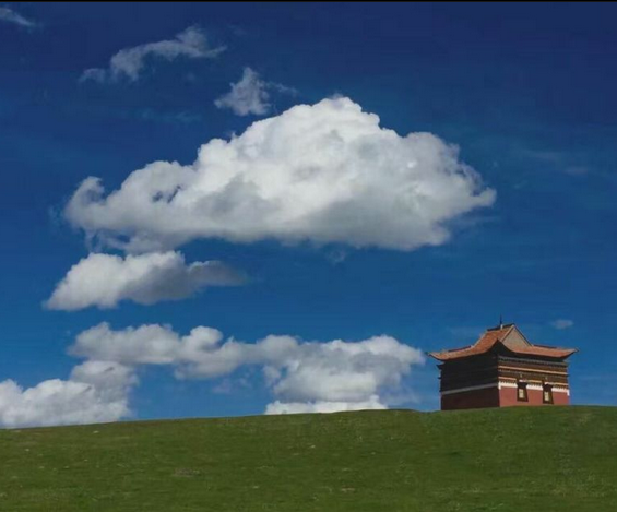 这画面给你一种神圣的感觉吗?天地是我们生存的地方,属于物质需求,它们如此绿如此蓝如此洁白,是身体存在于一个美好的环境。而庙宇,就是我们精神的龛笼,它存放我们的灵魂也限制我们的灵魂,不至于太过漂泊无依。身处天地心系乾坤,乾坤不是天地,它可大可小,像哪吒乾坤圈,像这座庙宇,你说它大吗?它小吗?心有多大天地就有多大。