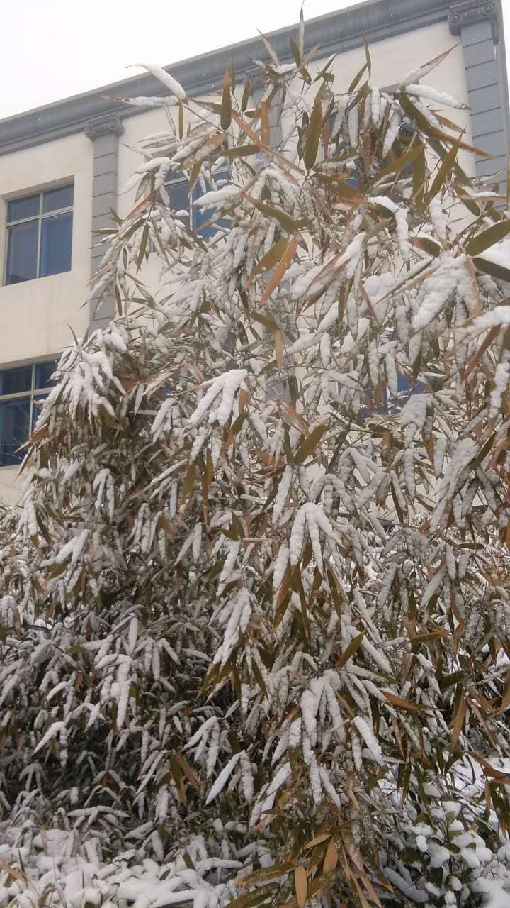 院里的竹子,冬青头顶白雪,这样一点绿,一点白,惹的人频频拍照,一阵风吹过,竹叶上的雪花跳舞了……