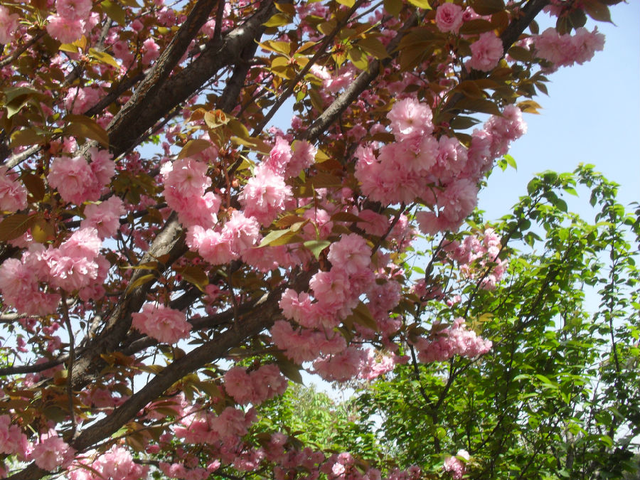 今天的春天变幻不止,匆匆来,再匆匆离开,如此反复,像一个和你玩捉迷藏游戏的调皮的孩童,总是抓不到。风沙、暖阳、雨水,再风沙、雨水、阳光,偶尔还会在雨中夹着小冰雹。温度也一直是升到可以穿单衣,再降至冷到穿羽绒服,让你永远不知道明天是春天还是冬天。 有人说,春天很二,天气是随机播放的。这话听上去是生气中带着调侃式的玩笑,却是事实。把冬天的棉衣、秋天的风衣全部洗好收了起来,却遇到了反复的天气变化,忽冷忽热中,让人无可奈何。街上随时可见生活在不同季节的行人,像是很多部电视剧选的却是同一场景。 人对天气的感知也许是过于敏感了。相对而言,树木、花草倒是不惊不喜,悠然地按照它们的方式发芽、吐绿、开花,纵然是遇到冷风冷雨,也改变不了它们对生命的延伸。一夜间,花树满庭芳,绿叶遍枝头。单位门前的游园小路旁,两排桃树没有见到吐蕾,恍然间已是粉红正艳,在芳菲的四月里,绽放出了春天的颜色。每个清晨,行走在这条开满花的小路上,心情明亮而愉悦。 这种愉悦的心情一直持续着,并且在放大着对美景的欣赏与融入其中的幸福。漫步城市里,感知着它的变化。这个城市建设越来越合理规划,不仅是大路就连背街小巷也实行了路面硬化、绿化、美化,城市的道路平坦而顺畅,无论怎么走,都能到达你相去的地方,只是路途远近的问题。 穿过了好几条大道大街,路过了无数个红绿灯。回头看看,好像城市除了红绿灯、高楼大厦、穿流不息的车辆,就没看到入目的绿色,也许是我急于赶路,错过了自然的风景。