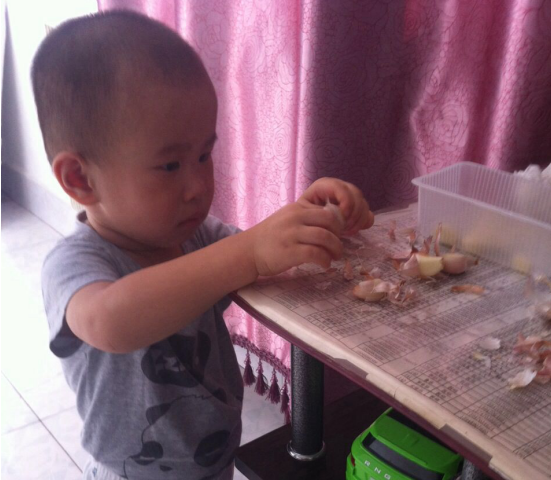 小外孙儿是个干啥都很专注的孩子,看看那剥蒜的认真劲儿!