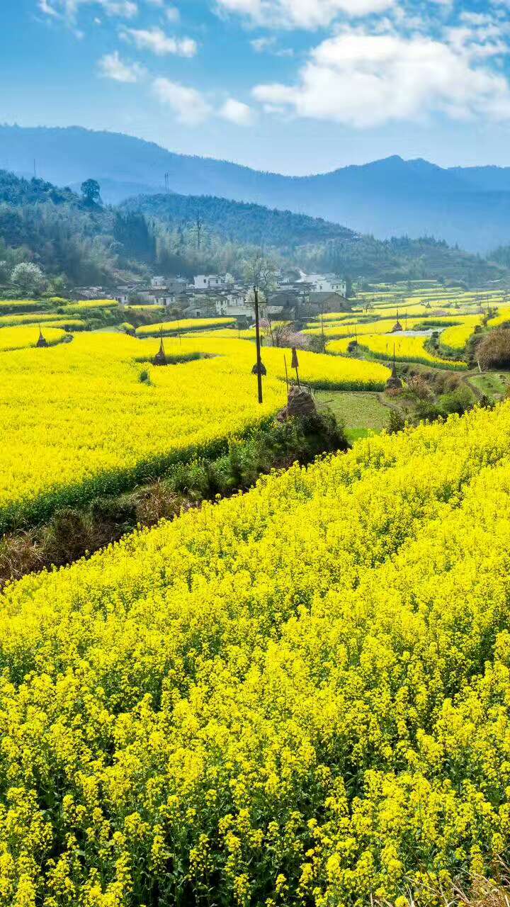 试想,一株油菜花会是什么样子呢?它的美与数量绝对成正比,一株油菜花点亮不了春天,一株油菜花也不会引起人的欣赏,只有上千上万的油菜花站在一起,呈现出的这种美才能书写大地的诗情,才能铺陈春天的气息,才能吸引一波一波的人前往驻足欣赏。