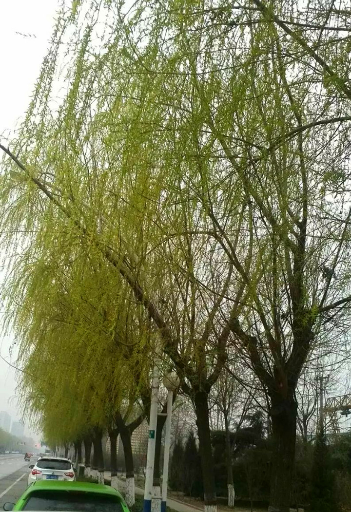 柳丝柔柔怯怯 垂下娇羞的倩影 在三月中旬 点缀路上的风景 微风轻抚时 舞韵春的娉婷