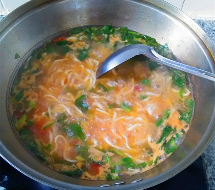 值班吃午餐,开灶下挂面。 自己动手做,不要怕麻烦。 葱花先呛锅,注意少放盐。 番茄颜色红,翠绿菠菜添。 为了增营养,水开下鸡蛋。 饭熟先品味,尝尝淡与咸。 关火关电源,拿勺盛一碗。 轻轻吹热气,色香昧俱全。 捞面后喝汤,细嚼再慢咽。 原汁配原味,胜过方便面。