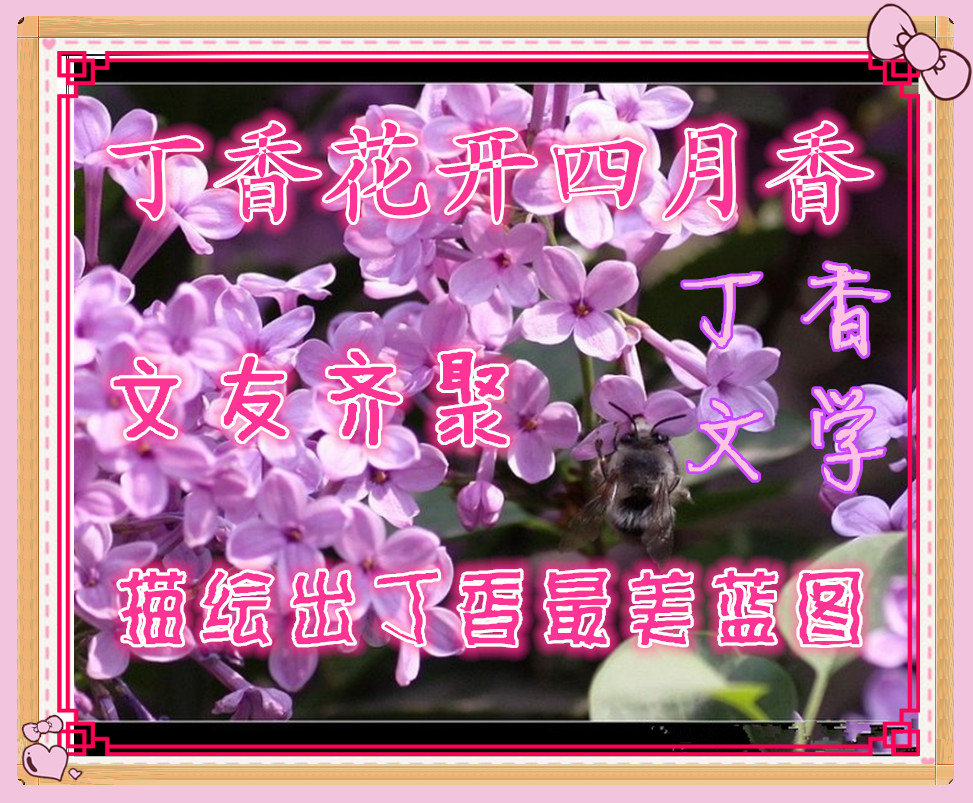 四月是丁香花开的季节,丁香花的幽香在四面八方飘洒,她含着微笑欢迎四方文友的加入。丁香花芬芳诱人,让路过的文友停下了匆忙的脚步,加入丁香这个温暖和谐的大家! 丁香文学社团人才辈出,丁香文学社团的领导班子一代一代优秀,他们和蔼的笑容,温馨的鼓励,让文友朋友们心里暖洋洋的,感到家的温馨,个个发挥自己的聪明才智,奉献上最精彩的文章诗篇! 我们为了一个爱好文学的心愿,相聚丁香。大家共同努力,挥毫铺墨描绘出丁香美好的壮丽蓝图! 走进丁香,看到的是文笔精彩,语言流畅,故事情节生动感人的文字。路人每每经过,都要停下脚步,伸出大拇指,夸赞丁香有好的管理团队,有多才多艺的文友家人! 每当我打开文章评论,看到的是娇娇社长那铿锵有力的评语,社团的每篇文章她都要跟评,温暖人心的话语,对作者文章认真负责的评价,对每位走进丁香的家人无微不至的关怀,温暖着加入丁香文友的心田。她认真细致的工作作风,感动着每位家人,让每位丁香家人都感受到家的温馨! 我是个小学还没毕业,而且年迈的老人,由于文化知识的贫乏,到处遭人白眼嫌弃。娇娇社长她没有嫌弃我这个既没文化又年迈的老人,和我以心交心,无话不谈,成为很亲近的姐妹! 打开丁香每位带头人的文集,映入眼帘的是那接二连三的精品红豆豆,里面还包裹着绝品文章。他们的写文水平个个都是顶呱呱,个个都是才华出众的高手,有这样的管理团队,丁香会更加辉煌灿烂! 相比之下,我这个文化知识欠缺,写文能力很差,只靠爱好文学的热情加入他们的团队,唯恐拉社团的后腿。虽然丁香接纳了我,但我的写文水平和大家相差甚远,简直是无法形容。我只有努力上进,好好向大家学习取经,力求做到最好,才能对得起社长娇娇和所有丁香家人的厚爱! 丁香,是文友齐聚温馨的文学天地!丁香,是团结一心,大展才华开心快乐的乐园!丁香,是文学爱好者挥毫铺墨大显身手的文学园地! 四月的丁香花飘香十里,伸出美丽的双手欢迎文友家人的到来。四月的丁香树为我们这些慕名而来的家人载歌载舞,扭动着美丽的腰肢让我们陶醉在丁香温馨的家园! 加入丁香的文友,朋友兄弟姐妹们,拿起你手中的神笔写出美、精、绝,精彩的文章,绘出丁香最美的河山,支持娇娇这位美女,才华横溢的社长,建设我们丁香美好的家园。让丁香成为江山的焦点,成为江山一颗美丽耀眼的明珠。 丁香,加油!丁香,你是最棒的! |